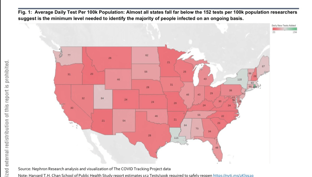 And by mid-April the COVID Tracking Project estimated almost all states performed fewer than the 152 tests per 100,000 demanded to identify the range of individuals infected.