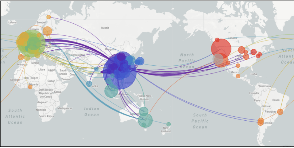 Ability to plot an accurate distribution of viral strains aggregated from individual samples help understand the virus over a global space: but we mapped by national blocks.