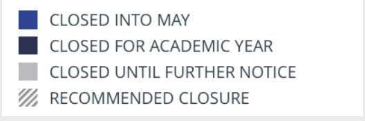 –the mid-March geography of school closures or recommendations for closure hit areas that lack WIFI or which have high learning needs in the United States, and particularly in the southern United States, or uneven high-speed internet; closure into April in some states may have reflected fear of shifting to online instruction on a permanent basis in many states.