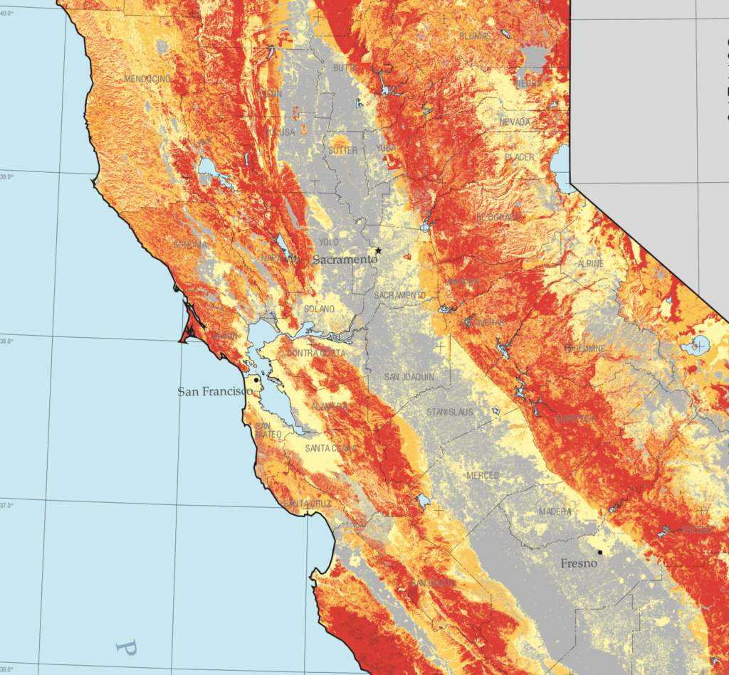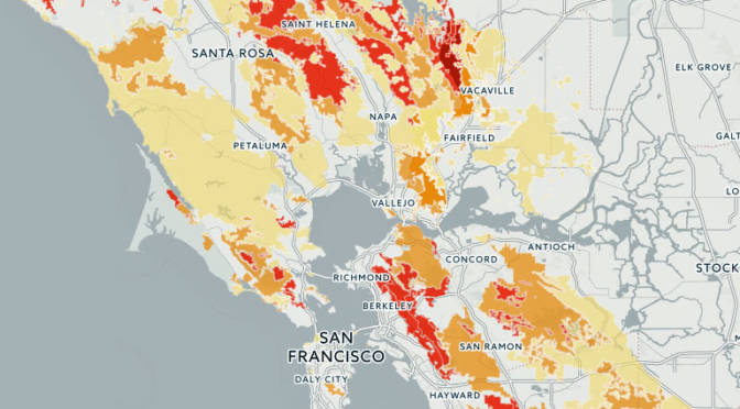 If San Francisco famously lies close to natural beauty, the Bay Area, where I live, lies amidst of a high risk zone, where daily updates on fire risk is displayed prominent and with regularity in all regional parks. These maps made over a decade ago setfire standards for building construction in a time of massive extra-urban expansion. But risk has recently been something we struggled to calculate as we followed the real-time updates of the spread of fires, smoke, and ash on tenterhooks and with readiness and high sense of contingency, anxiety already elevated by rates of coronaviurs that depended on good numbers: fire risk was seen as an objective calculation fifteen years ago, but was now not easy to determine or two rank so crisply by three different shades.