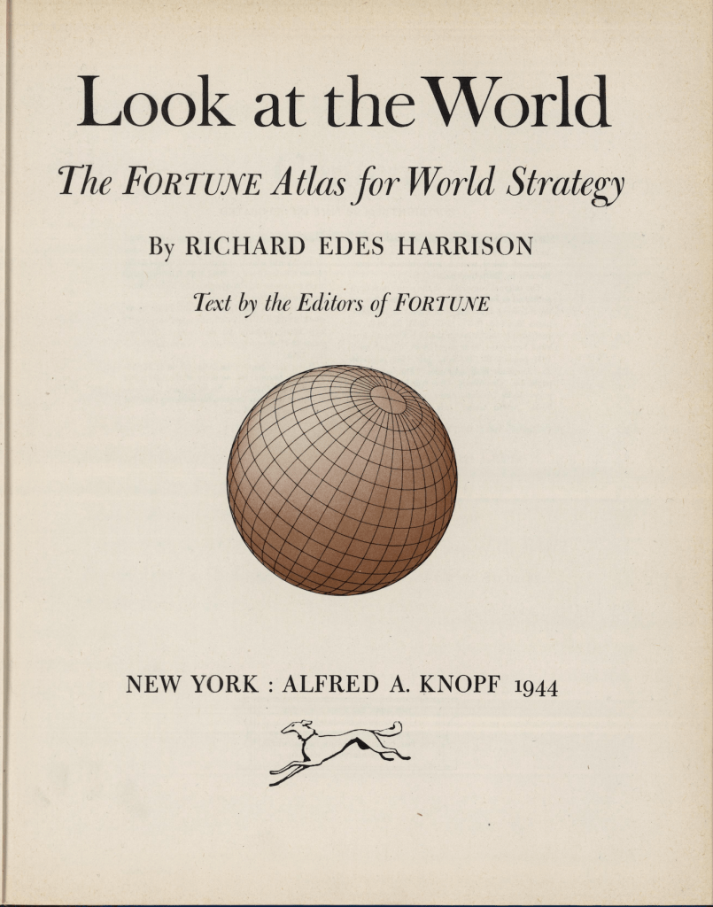 Politicians like Wendel Wilkie optimistically assured audiences in 1940 that “there are no distant points in the world any longer,” by using the magic of a Universal Transverse Mercator, Richard Edes Harrison exploited available global mathematical projections to teach Americans, as the editors of Fortune magazine or Harrison himself put it, there was now “One World, One War,” as a single map was entitled in the the atlas that Harrison helped produce to allow readers to “Look at the World” with new eyes, eyes of global strategy, in a view of the world fitting the “air age”–and global war.