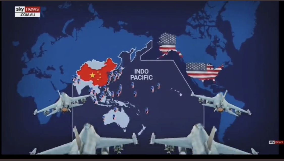 While it is easy to remember the dominance of these theaters in Edes Harrison’s colorful maps, we see them replayed, all too often watch the new geopoltics of a Pacific theater emerging on Australia’s Sky TV, aiming to rationalize a war still about to happen, as we watch the influence of a new Pacific theater that stretches from India to Alaska, where American troops are stationed at the ready–on bases or ships, as an extension in extremis of American sovereignty far from Hawai’i–
