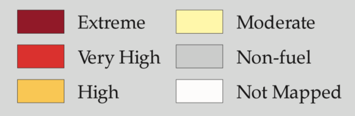 Years of elevated temperatures led to a situation troubled by blinders and a failure to care for forests, or to maintain defensible spaces around property. Indeed, a lack of attention to growing risk over at half-decade long drought prepared the ground for the extreme nature of fires that made the “Fire Risk” FRAP map of 2007 more of a reminder of the fire landscapes of the past. But while it rests on “fire land” or “fuel rank” as well las fire frequency, or “rotation,” the map’s crisp colors fails to distinguish dangers of fire spread, smoke, and in its preservation of sharp lines seems foreign to the fluid complexity of fires’ spread.