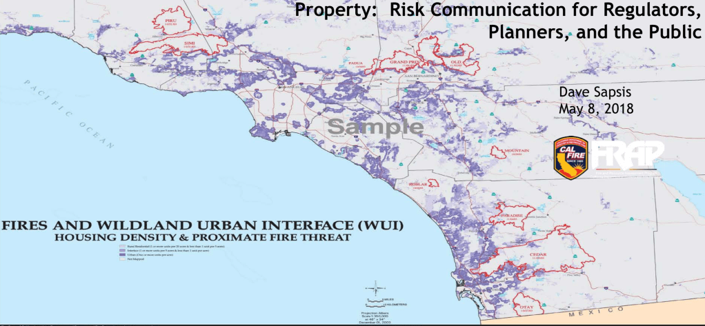 Yet “risk” was assessed with blinders. While graphically compelling and persuasive, the map that distributed fires against the increased “interface” of cities and wildlands–or an attack of real estate and unconstrained development–echoed earlier calls to manage fire risk better years prior: the hope to manage fire risk by maintaining standardized risk mapping of the increasingly inhabited expansion of infrastructure across largely undeveloped wild lands-urban interface in the western states, posed the demand for making and distributing detailed fire risk maps, much in the manner that has been long done for floodplains. Only by doing so could one prevent the egregious bracketing of risk by home buyers in hopes to encourage fire risk planning, better loan politics on building houses in areas of fire risk, tiered rates of fire insurance, and better community involvement in fire-fighting costs–all of which depend on robust practices of public data collection and creating a larger dataset of fires, property loss, and wildfire damages that are not fully tabulated in a universal way–and conceal risks of property development.