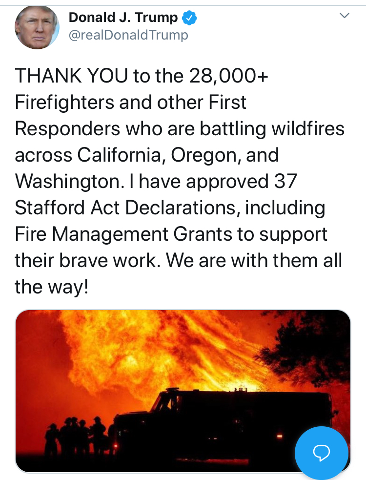 The fight or flight reaction, as always, doesn’t serve us well. but there was once a sense, back when the U.S. President knew a bit about forestry, and forest management was a respected field, and the President called not only for better raking of forest floors, but might be imagined as Forester-in-Chief. When Donald Trump has enjoyed blaming poor local officials for the mismanagement for fires that have occurred largely on federally managed lands, the lack of a policy of fire management is increasingly dire, as the growth of huge fires and ad hoc fire prevention teams that are regularly assembled each fire season remind us of the unsustainable nature of trying to contain fires by current land management policies that already spread thin fire containment needs for the Bureau of Land Management across the entire state, overwhelming the fire fighters who worked to contain them before the lightning strikes hit the very same areas supervised by the Bureau of Land Management.