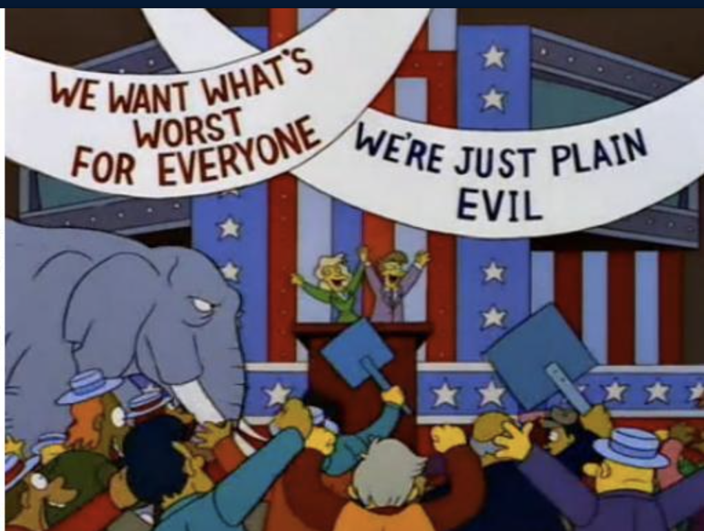 There was no move to foreground a change in the party’s political platform, but the inauguration of a new symbol of the party, as if to prepare for the inauguration of a President with life-long ambitions, was short on the associations of elephants and memory than a new image of triumphalism, or a compelling bread-and-circuses forum to promote the inevitability of Trump’s candidacy as a vibrant occasion as the body politic suffered. The red elephant newly resurgent was something of a new vision of a “red body politic,” incarnating the will of red states as much as traditions of a party increasingly associated with White Supremacy, alt right blowhards, vitriolic racism, and capitalist mega-corporations, but now star-studded as if in an attempt to prevent the elephant fleeing the convention from running, as Stampy the elephant, past cheering Republicans celebrating they were “just plain evil,” back in 1994 episode, before being sent to a game reserve: if the 2020 actual convention might as well admit, twenty-six years later, to being “just plain evil,” the iconic elephant that was displayed onstage and television screens soared above the more pedestrian issues of the day.