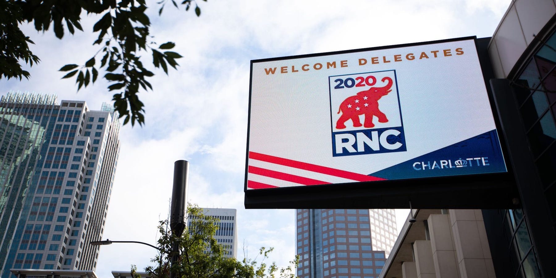 The personal bonds of leader to party had been hoped to be incarnated in an elephant that however improbably seemed able to defy gravity and rise into the air, ascendant in the empyrean. Even in late August, 2020, Donald Trump realized the high stakes of collective bonding to the nation. Pubic messaging faltered in the coronavirus pandemic even as it struggled to remain smooth. Hope that the stars would align to create a red-state electoral map again stretching from Arizona to Maine, down to Florida, seemed subliminally encoded in the imaginary constellation of five stars embedded in the bright red elephant designed for the 2020 Republican Convention to celebrate the rebrand the GOP as a Party of Trump. But the deeply racist origins of the party symbol, long purged by the mainstreaming of the pachyderm as a partisan icon, seem to reveal its racist lineage in a strategy based on rebranding the Republican Party as a red elephant in the heart of the Old South: newly star-studded to reflect the energy of the party, and its motivation in extending the Trump era, and almost recalling a double-“V” of victory as an astrological variant on national destiny, the design that Rona McDaniel promoted as a reflection of the vitality of the “traditions of the Republican Party” all but concealed the lack of interest in a convention whose triumphalism concealed that Trump faced no serious challenge.