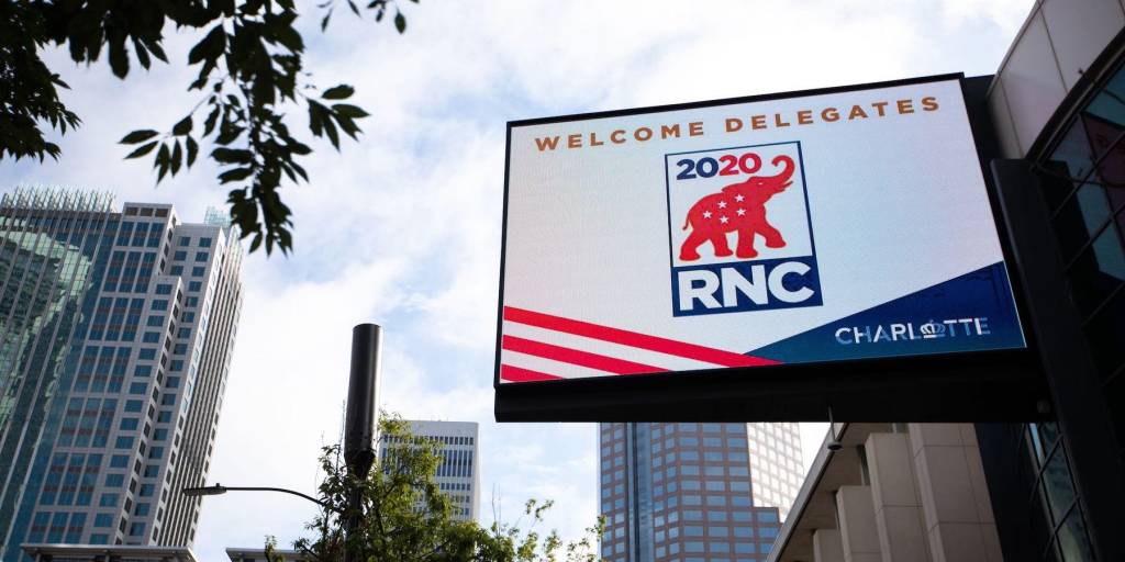 The Republican Party unveiled a sleek lines of a new red elephant in preparation for the 2020 Republican Convention recuperated the performative origins of the once-sturdy quadruped as it appeared on the jumbotron, whose very size communicated how much air the presence of Donald J. Trump had sucked out of Charlotte’s Convention Center.
