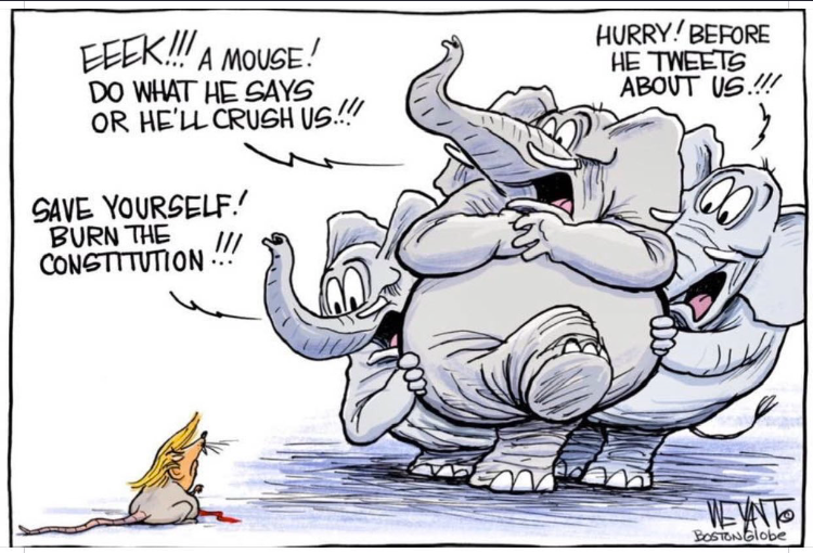 The attempt to invigorate the elephant never really got off the ground as it tried to reinvent itself in the Trump era–toying with the notion of insisting its initials were “Government of the People”–Lincoln’s phrase–but trying to call itself a Party of the Future, or simply “Our Party,” to instill an over-exaggeratedly forward-looking quality of truly cartoonish qualities, long absent from the four-legged beast, suggesting its considerate eagerness and insatiability, balancing any sense of its blue bloodedness squarely on four red legs.