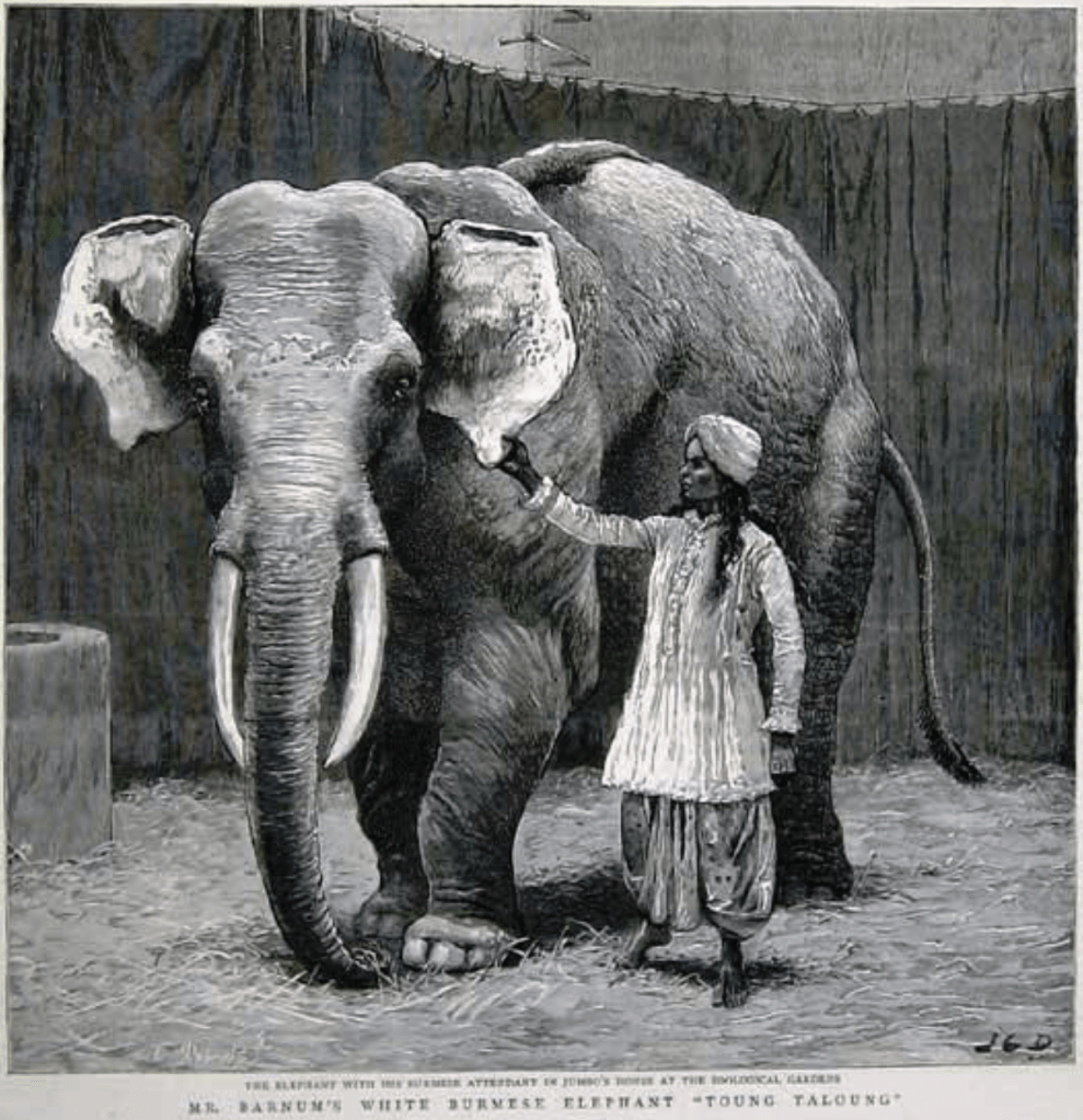 Mr. Barnum’s White Burmese Elephant, ‘Toung Taloung”