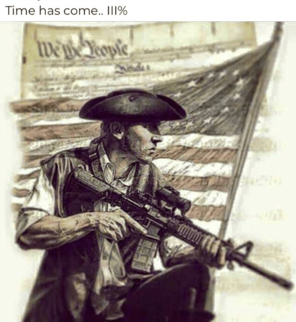 The compact was able to be secured by “We the People,” and invited contingents to identify themselves by Gadsden flags that illustrated their commitment to the cause, diffused by the “3%ers,” a militia group of Patriots who since 2008 have vowed anti-government extremism, often based in Canada.