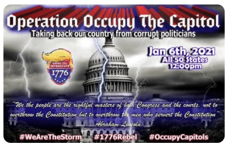 Secession need not be a bad thing, those who held high Gadsden Flags realized. This was about defending the imaginary of a new nation, forever resilient, and might create either the basis to restore the rightful ruler or if not trigger the secessionist movement that might follow in the country, as a number of simultaneous protests were planned across state capitols–demonstrations that might be pushed to create a unifying protest that awoke a sleeping red giant, and many of the overlapping groups of Oath Keepers, Proud Boys, secessionist movements in varied states and alt right groups.