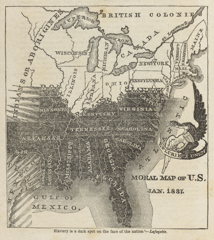 –but mapped a stain upon the nation, and not only for American abilitionists: while Mexico had prohibited the institution of slavery, the southern insurrections who fought, with Barrett, against Mexican sovereignty, were not only “revolutionaries,” but had envoiced a fight for the expansion of slavery, endemic to southern states but in need of expanding to Texian lands.