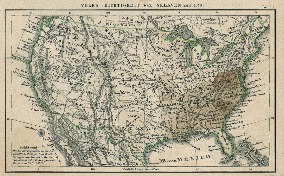 –but mapped a stain upon the nation, and not only for American abilitionists: while Mexico had prohibited the institution of slavery, the southern insurrections who fought, with Barrett, against Mexican sovereignty, were not only “revolutionaries,” but had envoiced a fight for the expansion of slavery, endemic to southern states but in need of expanding to Texian lands.