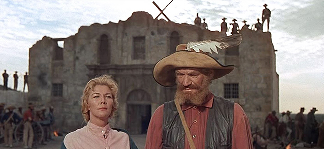 There is no sense of borderlanders here, but of heroes that were on one side or the other of the line–a line that seems a meridian set in the ground, if a line of longitude, and a founding line of the nineteenth-century nation. Crockett, Bowie, and Travis defended the citadel walls behind which they discussed dreams of a Republic in The Alamo (1960), before an impending imminent siege of “Mexican forces,” repelling them to their best as they tried to scale the Mission’s mythic walls.