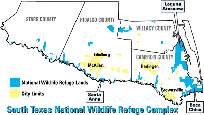 Or as a quite complex necklace of wildlife refuges, parks, and wilderness areas in the Rio Grande Valley, whose banks were long nourished by loamy waters that regularly flooded the riparian areas of the region, making it a spot for the migration of birds, butterflies, and across the South Texas Wildlife Refuge Complex, a corridor for the travel of sensitive species.