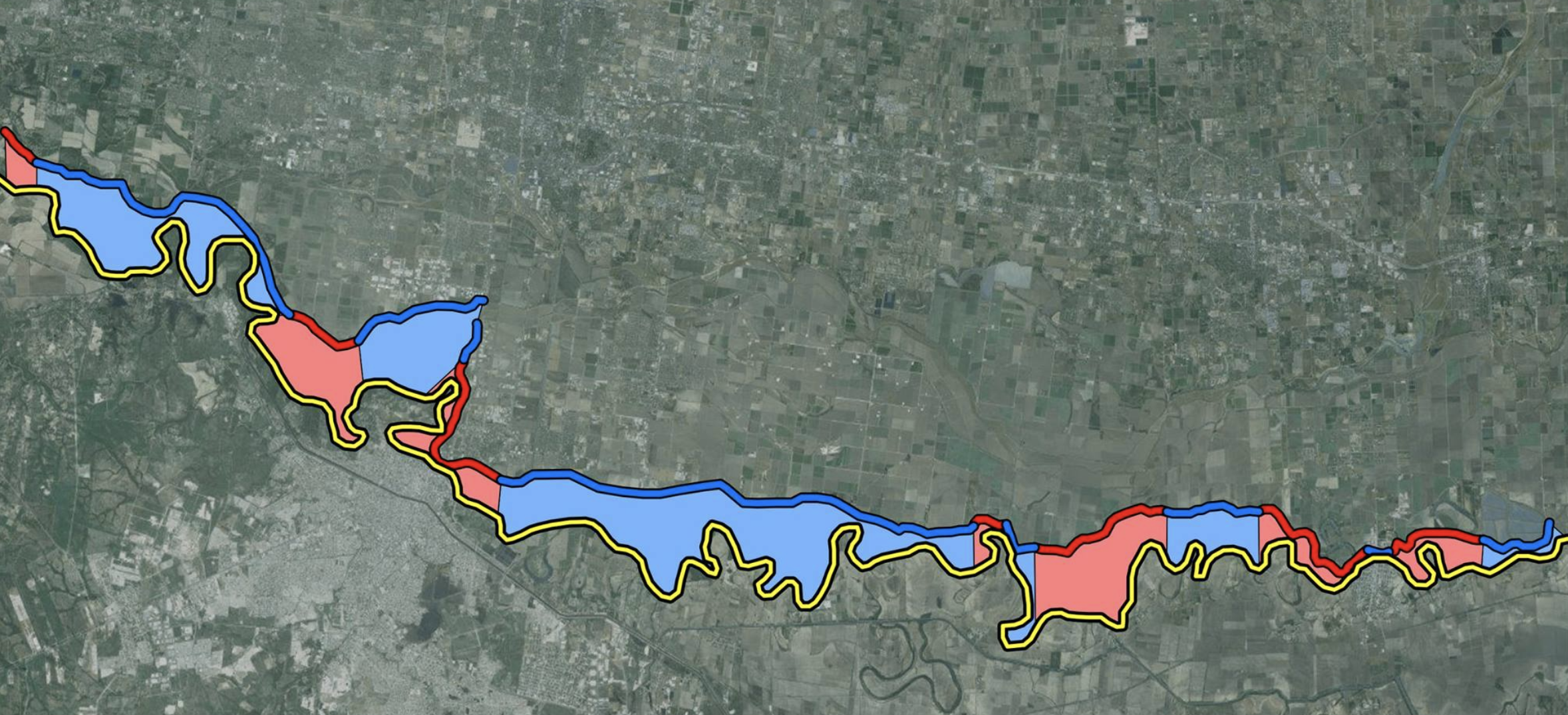 In the actual South Texas Wildlife Complex, the expanded concrete levees would interrupt protected sensitive areas, and be built north of the meander of the Rio Grande, if at time abutting its waters, that seemed to privilege the rhetoric of a feared “flood” of migrants over the seasonal flooding of the river that long enriched riverside “resecas” by water bearing loamy soils, that imposition of dikes, levees, and dams for water diversion had already substantially reduced, by expanding the sheer concrete of a border wall just above its banks, in close contact with multiple wildlife refuges and preserved sensitive habitat for protected species–habitats that would be disrupted by the inroads of huge construction projects, road systems, and noise pollution that the prosposed border wall wold bring in the Rio Grande Valley.