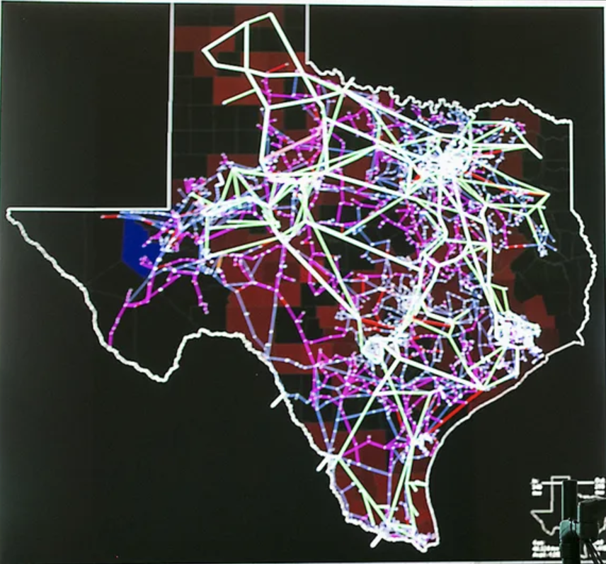 Indeed, the opacity of power flows in an energy market dominated by the Electric Reliability Council of Texas (ENCOT) has brokered a map of providing what are best understood as one-way maps of energy flow that the consumers cannot adequately grasp. For the map is removed from pressures of climate change; in the ERCOT control room, the map of energy flow across Texas reveals market flows consumers of electricity are unlikely to grasp either by it vulnerability or the levels of economic risk it commits them–by removing them from a sense of the heightened risks to energy flow that houses tethered to electrical heating are particularly vulnerable.