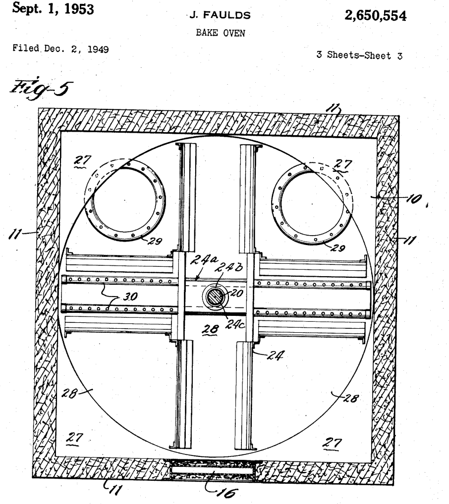 Yet it was undoubtedly in the high temperatures of the gas oven whose rotating lazy susan offered all that cheese to melt, and to melt in ways that could be readily reheated, that allowed the easy production of pizza crust as we know it–the defining factor of any pie, bottom line–and that transformed all that cheese to a network of melted shred that offered the pleasurable stretch in its salty strands, and supporting a thin layer of something like oil and tomato paste. patented just postwar, and not at all for pizza, Faulds ovens were the mainstay of the first independent pizza shop, the initial investment that led to a boundy of pizza profits and productions, in which the American pie was forged.