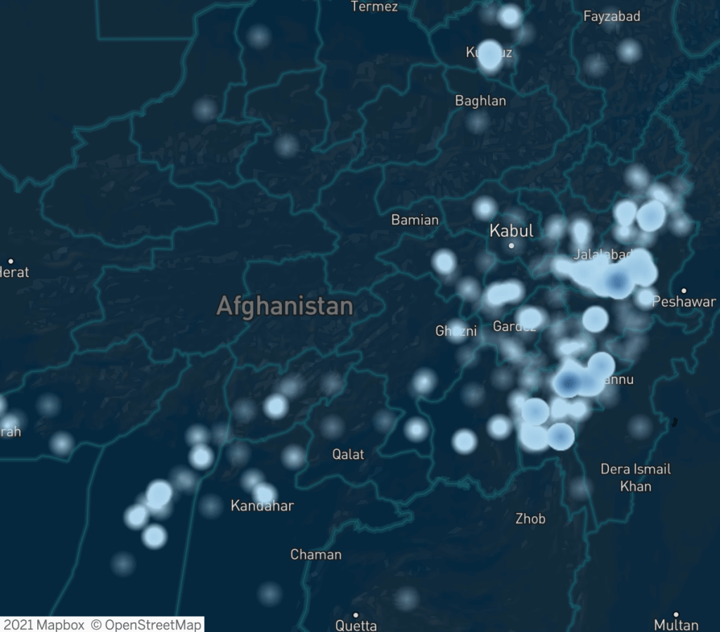 It is hard to tally or come to terms with the human cost of post-9/11 wars. Over 9,000 Americans have died, or the hundreds of thousands who returned from the wars, injured in body or psyche, the roughly 6,200 U.S. military personnel, contractors, humanitarian workers and journalists killed in Afghanistan since the U.S. government invaded are left off the map, but the legacy may be greatest for the huge amounts of military materiel shipped into the Middle East–arms that helped in some way to “modernize” the current Taliban, who may have received training from Pakistan intel–as well as the huge losses of population and infrastructure in Afghanistan, where about 71,000 Pakistani and Afghan civilians are estimated to have been killed–a staggeringly disproportionate number in crossfire, bombing raids, drone attacks, suicide bombings in Kabul and other bases, IED’s and night-time raids by NATO or American troops.