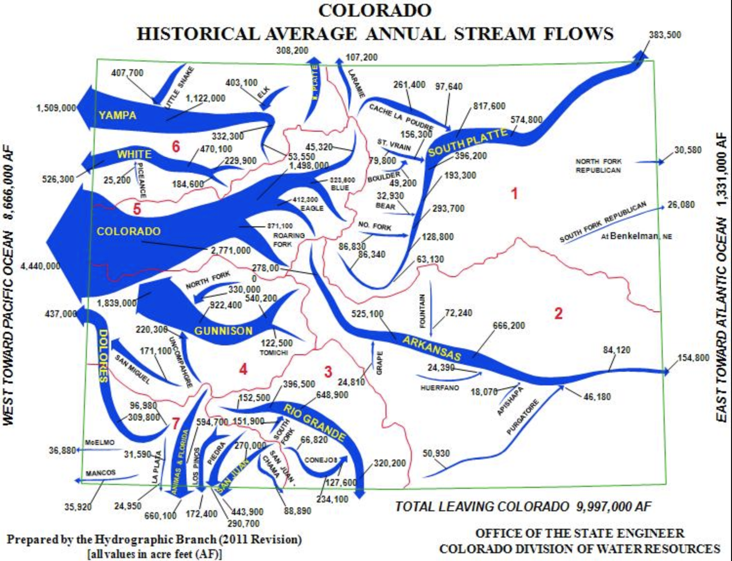 Its format bequeathed a logic of efficient use of water, to be sure, by privileging regions of future settlement as of local administration, but bound each without attention to a broader ecological context–if without ability to imagine the broader ecological impacts of the diversion of the drainage from the Upper Watershed in the manner that the Hoover Dam allowed by 1932, in ways that obviated any need to respect water availability by independent basins. Although the construction of further dams were prohibited on national monuments from 1959, the conversion of water-flow to a national good by bounding it within national bounds, converting the rainfall that accumulated south of “British Possessions,” to which meager flows might descend to British Colombia, Alberta or Saskatchewan, by conserving the vast upper drainage basin. While Powell’s map contrasts the actual drainage basins with state lines to alert its readers to their impending collision course that would result in legal struggles over access to and rights for water flow, the difficulties of construing water-flow by state lines is apparent in a Snake Diagram of current or recent trans-border flows of river water engineered over the past century to allocate water to neighboring states–Colorado the state receives no water from its neighbors, centered on the headwaters of six rivers that descend from the Rocky Mountains. The allocation of the Colorado River’s water engineered a false abundance of water that endured through the intensifying aridity of the twenty-first century, concealing the national emergency as warming decreased the rainfall levels and soil moisture of the northwest. The bracketing of water resources is the subject of this post.