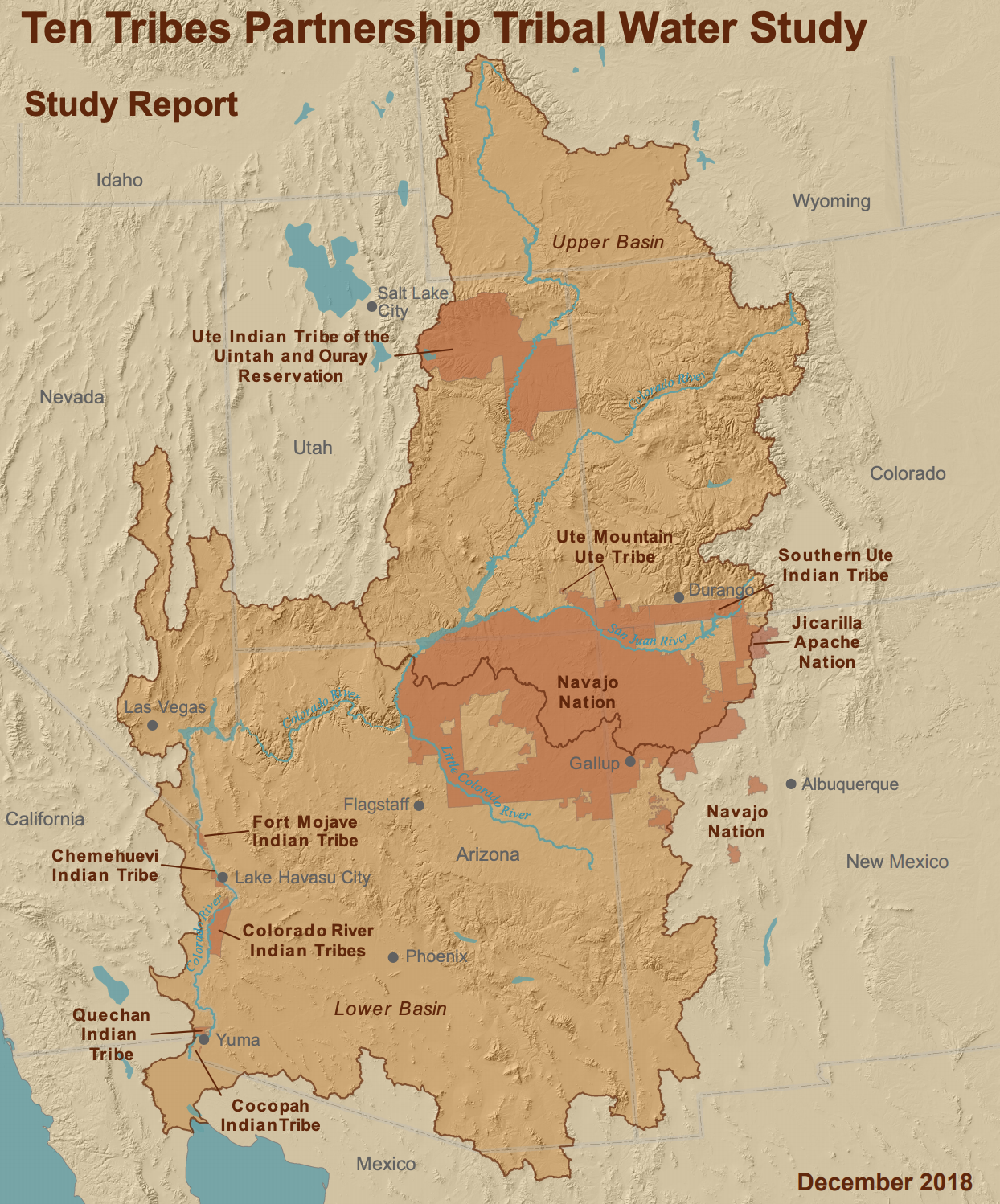 Powell bemoaned the relative ignorance of Washington in presuming to have accurate maps of the region at its command, trusting maps “that put down only what is absolutely, scientifically known, [but] leave a blank space of three hundred to five hundred miles long, and one hundred to two hundred miles broad,” as evidence of the nation’s ignorance of itself: but if cartographers had, in Stegner’s telling, marked the hinterlands “unexplored” in a tantalizing fashion for Powell, as he found maps of the General Land Office tantalizingly blank along the Colorado and Green rivers, in the five hundred and fifty miles south of Salt Lake City from the Uinta Valley to the Little Colorado, they have since been mapped as settled by indigenous tribes, from the Ute Tribe, now inhabiting the Uinta Reservation, to the Navajo Nation, and Chemehuevi to the south: if a map of reservoirs in the state of California is a map of stolen indigenous lands, all the dams built on the Colorado River rom 1923-63 were flooding indigenous lands, from the Owens Valley which flooded Paiute and Shoshone lands, removing water rights with the Bureau of Indian Affairs.