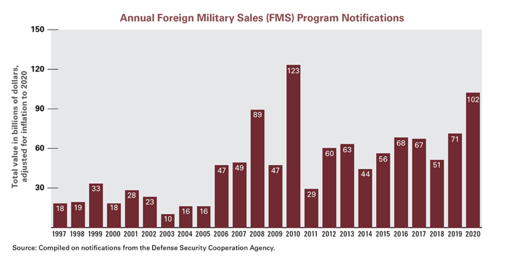 The GiF that purports to document the effects of American withdrawal renders the battlefield of Afghanistan as the rapid falling of provinces as if they were a gameboard, or a mock battlefield, creating a sense of causation due to American withdrawl by the proverbial falling of a set of dominoes. But the limited long-term strategy of these wars is handily elided in what seems the result of an immediate retreat of military presence. The retreat was, however, only the last act of a tragedy on a massive scale, the result of funneling arms rather than promoting national infrastructure in a nation that has limited infrastructure–and which even American forces were compelled to cast and indeed to consider as a tribal society that had no social structures that could be trusted or built upon. The increased lack of trust that dominated relations on the ground were more revealed by the map–as well as the lack of effort to foster a functioning government. Donald Trump may have escalated the arms trade into the Middle East to levels far beyond his predecessor, but the frustration of his successor Joe Biden was perhaps more clear-eyed than is given credit, if intentionally so: “We provided our Afghan partners with all the tools — let me emphasize: all the tools.”