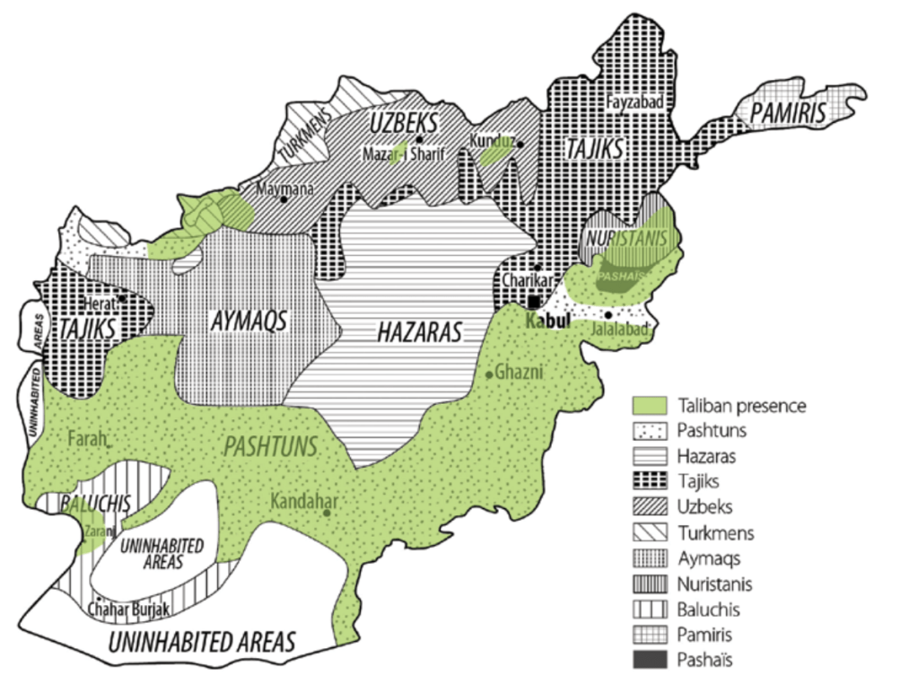 And if the largest ethnic group in Afghanistan is Pashtun, the focus on maps of administrative districts imposes a hope for civil society that over-rides or over-writes how Pashtuns straddle the Afghan border with Pakistan.
