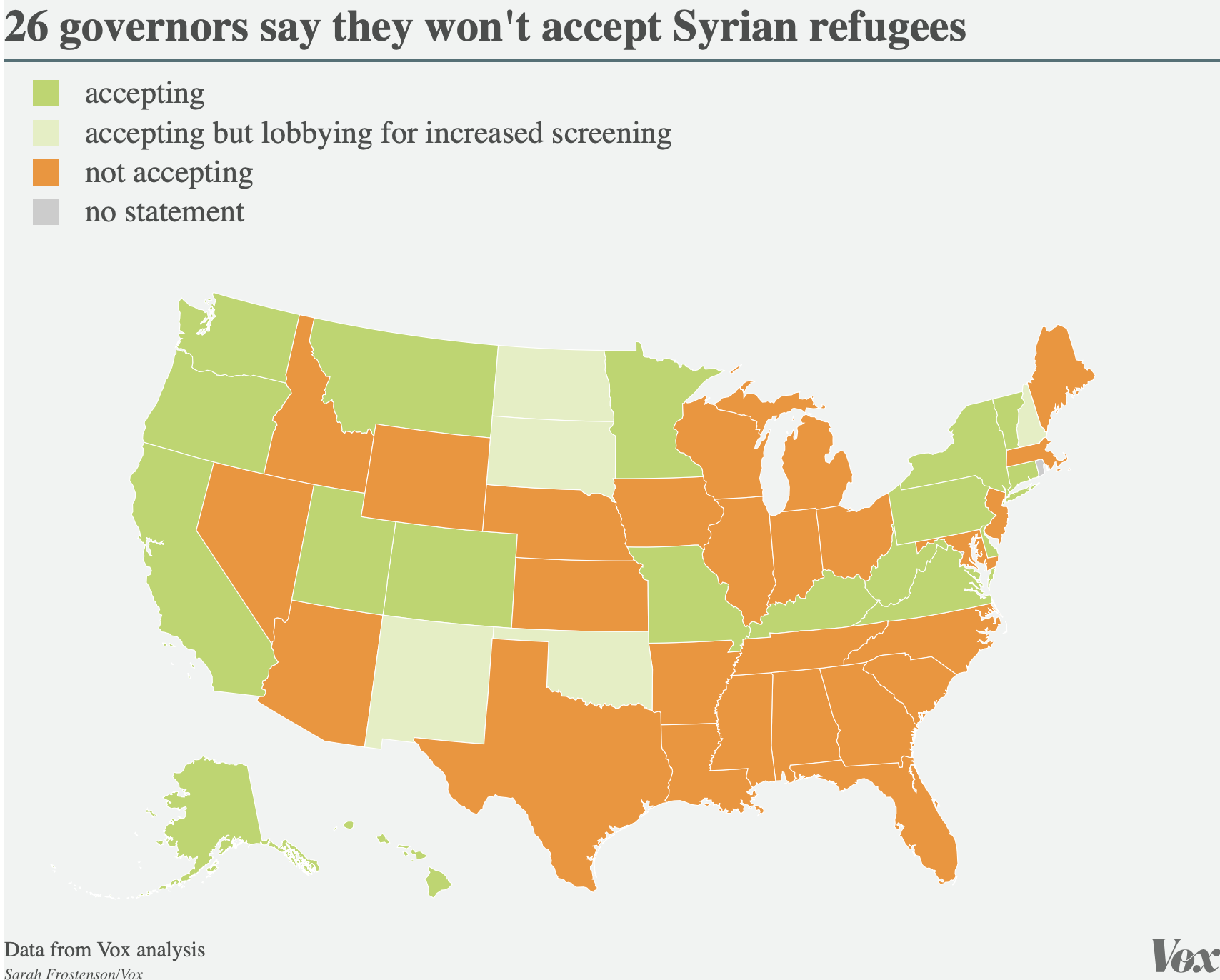 This, too, echoes the “last gasp of imperial nostalgia” that barely accounted for, and only grudgingly accepted, the arrival of members of an empire into Great Britain. What will happen to the refugees who are seeking admittance to America, and not only those who cast their lots with occupying forces? Of the 20,000 completed applications for Refugee Status by Special Immigrant Visas, few will be quickly processed. For the Biden administration must be haunted, in the back of their minds, by memories of the map of an eery states’ rights revolt, triggered in response to the influx of 85,000Syrian refugees in 2015, which, as fears far removed from southwestern border led a majority of state governors to refuse to permit Syrian refugees to settle in their borders–a map that, for better or worse, constituted a new sense of the red-state “heartland” of America, and the end of the quixotic Obama era.