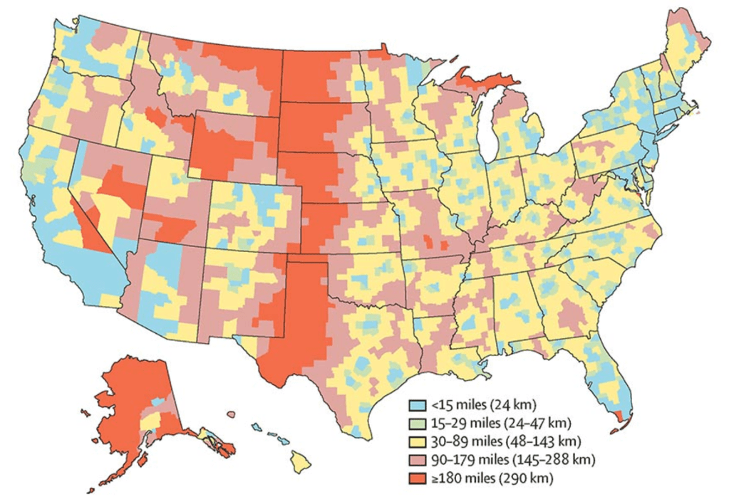 The country is divided by twenty-seven “abortion deserts” where residents of cities of over 50,000 must drive over a hundred miles to obtain an abortion–at times over three hundred miles, as for residents of Rapid City, SD. The needs to be seen for what it is–“abortion deserts,” but also deserts of health care. Beyond making one angry, it demands to be read as an intensification of lack of access to health care in those areas of the United States where the quality of health care is lowest–Texas, Mississippi, Arkansas, Oklahoma, Wyoming, Indiana, and New Mexico, as well as Kentucky and Louisiana. Are these states where the curtailing access to abortion is truly in the commanding interest of the state? As Governor Rick Perry of Texas happily refused federal funds for the states’ Medicaid Women’s Health Program to prevent any funds being accessed by Planned Parenthood, the curtailing of access to clinics offering the possibility of abortion that forced clinics to close in 2012 was a health care disaster, now seeking to be expanded ten years later by subtracting the state from national consensus on constitutional rights.