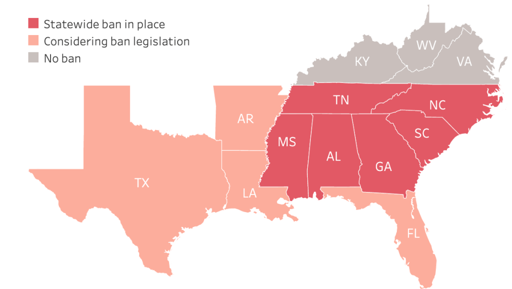 The hope to reframe the law of the land is dressed in deeply coercive strategies, however, both surveilling women’s wombs by mandated sonograms and triggering a landscape of fear by dangling the promise of a bounty of a minimum of $10,000 to encourage a sort of righteous surveillance among extended family members, at school, or university, or at workplace settings, all of which offer ripe settings to snoop on any facilitation of an abortion or any suspicion that a pregnancy has been terminated after six weeks–netting the vast majority of abortions performed as few women are likely to be aware of pregnancy before a short month and a half window. The geography of restrictions on abortion is telling, and is a landscape that is confusingly changing, in ways that many will be both disoriented and confused, as it lacks uniformity. If Texas has long been seen as a “red” state, it is less “red” than on the cutting edge of promoting sonograms as a threshold limiting access to abortion–already limited beyond six weeks gestation in Idaho, Oklahoma, South Carolina, and Texas, as if preparing to send cases to a Supreme Court dominated by justices appointed by Donald Trump. The recent skyrocketing of six-week bans across the country in Mississippi, Kentucky, Ohio, and Georgia are a hangover of the Trump presidency, in which a new landscape of restrictions on reproductive health planned to spread to the state legislatures of Missouri and Tennessee. There is also traction beyond red states in filing for such bans by legislators Illinois, Louisiana, Maine, Maryland, Minnesota, New York, South Carolina, and West Virginia.