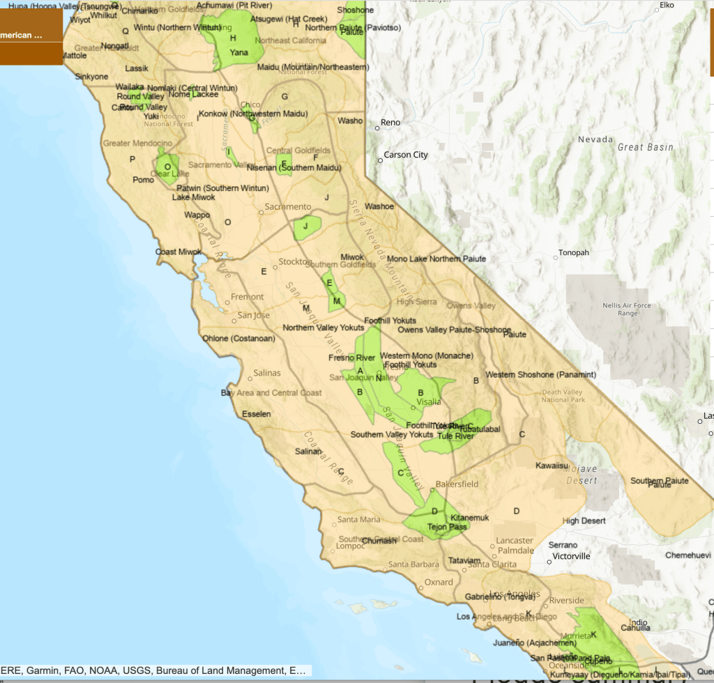 But is the format of GIS layers the best way to orient one to further exploration of the indigenous presence in the state, or is it describing space in the categories “California” and the United States government bequeathed on the historically “tribal” indigenous entities that it recognized,–