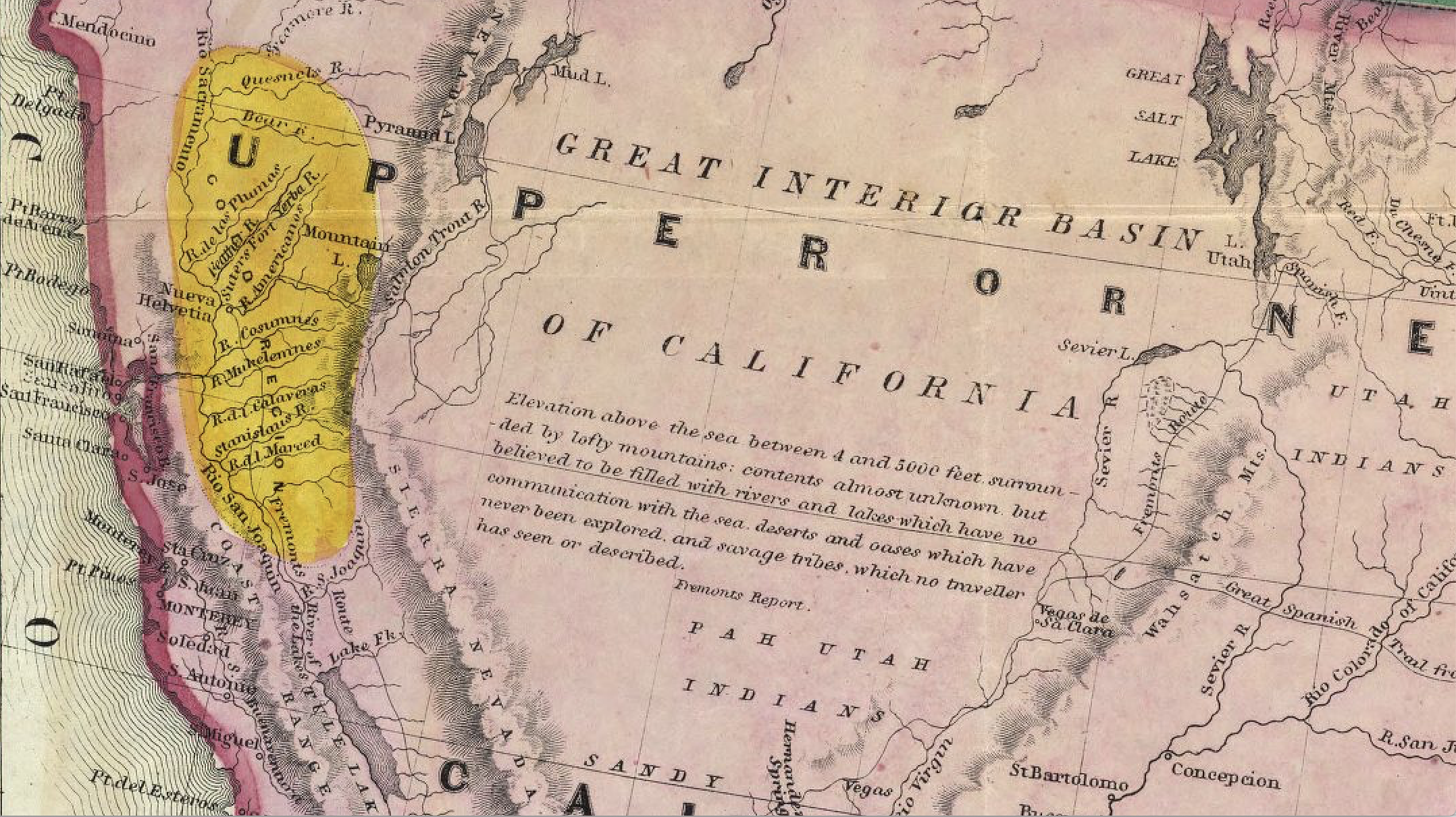 This question, long pressing but rarely recognized as pressing to address, was subsumed by the logic of capital and the demands for extraction, either in the maps of oil extraction in the header to this post, or the Gold Country maps, placing less emphasis on boundaries than the ability to target, access, and export to a market whose demand trumps the local customs of the inhabitants of the place–far from the Far Utah Indians living far inland, or “Utah Indians,” but offering a separate plot that immediately attracts the viewer’s eye to rest on this region of “Upper or New California” newly open to all who sought all that glitters, as if it were a land of luxury, an island generating huge wealth for the taking, even if it wasn’t an island at all.