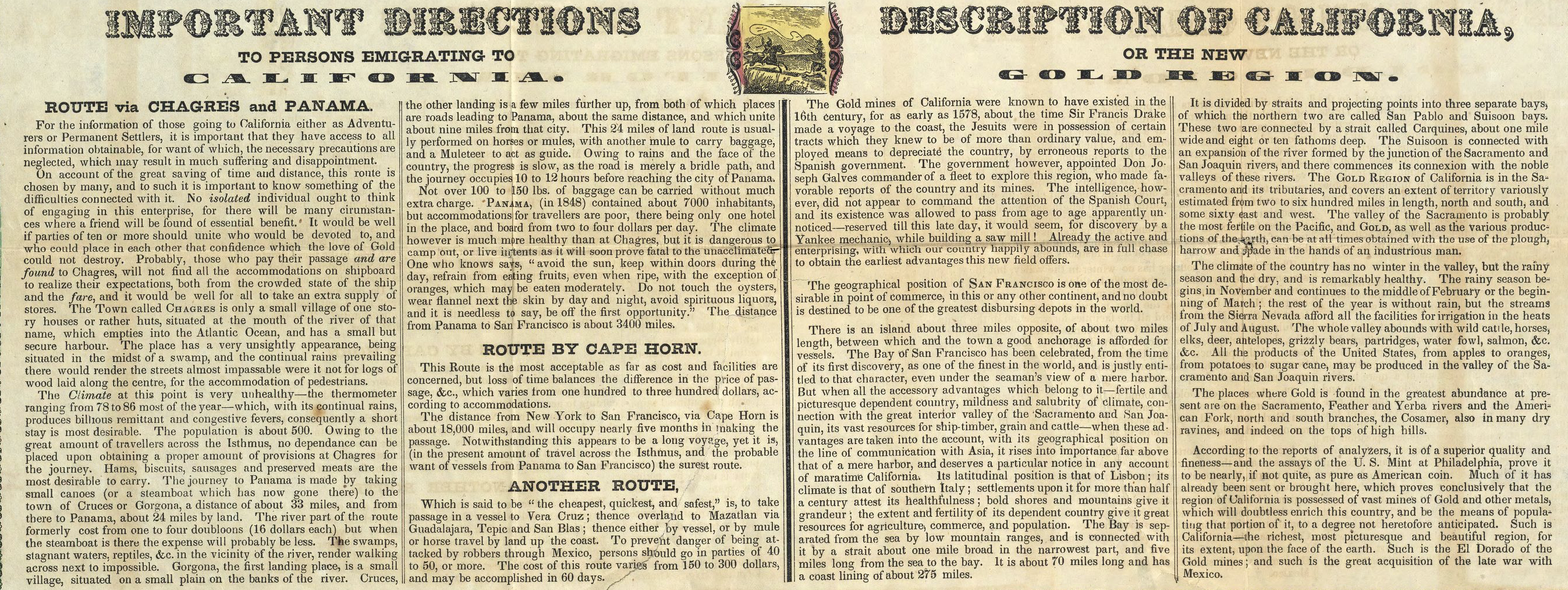 Gold Regions in Calfornia, Showing the routes via Chagres and Panama, Cape Horne, & c