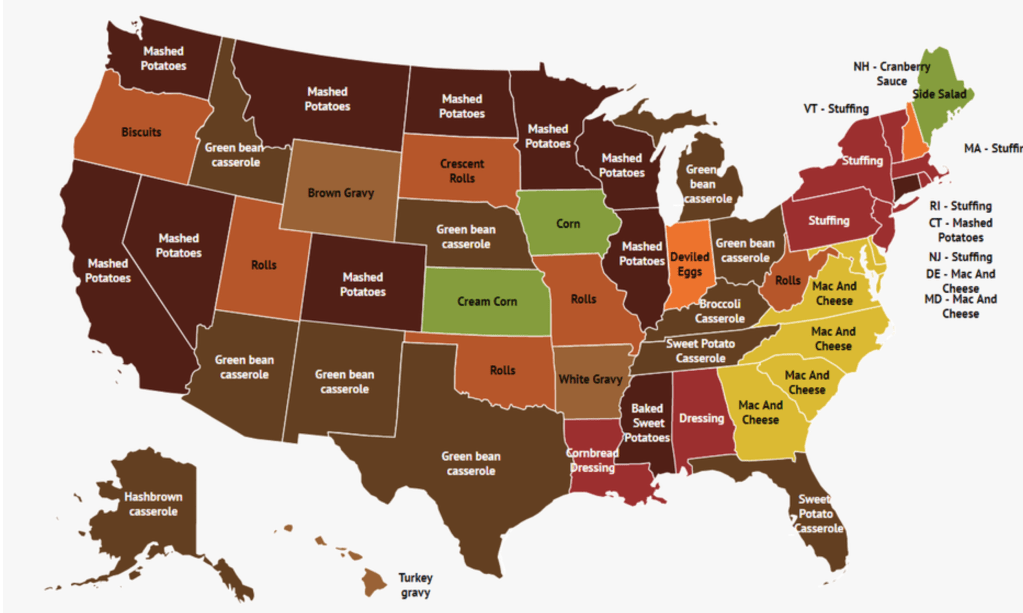 This historical dialectic of displacement will bring us to the Harvest feast. FOX commentator Laura Trump, latest defender of the Trump political brand, has grown into the part by calling out the designs of those to “take away our traditions” seeking to “chip away” at America by those who “don’t want us to any shared traditions like Thanksgiving” who seek to disrupt the traditional holiday by allowing the price of the festive meal to rise by inflation. The turkey is perhaps the atavistic bird of the wild–if modern turkeys are farmed–but the Trump in-law begged viewers to grasp the extent of the failure of government in the failure to protect turkey prices from rising a few dollars as an existential threat of “turning this country inside-out;” higher prices of turkey, warned the former President’s daughter in-law, as a way of “fundamentally transforming this country, . . . to make sure you have no commonality whatsoever,” or “common ground.” Indeed, “I guess we’re lucky they’re letting us have Thanksgiving this year,” she put herself in the disadvantaged minority, alerting viewers that even if the “shared traditions” being threatened at the register “might seem a little funny and ridiculous,” pointing to how inflation might eclipse Thanksgiving festivities and leave many resigned to skip tables laden with bounty in the past given the rising costs of the bird as a sinister plot to disrupt the Harvest Feast–“‘Oh, don’t have a turkey, then people won’t come over’”–as if intending to rob the Thanksgiving table of the entitled harvest feast–even if the “wild” turkey consumed on Thanksgiving is hardly the most popular of the carb-indulgent foods most anticipated in America. Pace Laura Trump, if on most Thanksgiving tables turkey may be a dramatic center, performatively carved, we anticipate preferred side dishes on the table like mashed potatoes, stuffing, mac & cheese, cream corn, deviled eggs and biscuits.