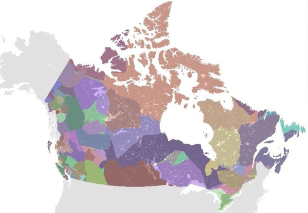 The rich range of pastel colors in these webmaps suggests the range of claims that we must, moving forward, be compelled to entertain and would do well to celebrate. Modern Canada constitutionally only explicitly recognizes three groups of aboriginal or indigenous–the Inuit, Métis, and generic “First Nations”–the multi-color blocks of native lands and historic “cessions” of tribal lands suggested a new understanding of how Canada had long celebrated its multiculturalism as a “mosaic” and not a “melting pot”–but showed the divisions of the land claims of a plurality of indigenous groups never recognized by Canadian law–and still quite problematically recognized in public acknowledgements of respect for land long inhabited by indigenous or “autchothones” proclaimed with piety by national airlines whose flight paths criss cross endangered boreal forests that tribes have long inhabited.