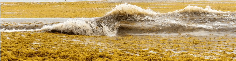 The arrival of the thirteen tons of floating biomass into the coastal waters of the Americas is a cause for alarm–described as an “invasion” and “creeping threat.” Species of Sargassum have been arriving in Caribbean waters since 2015 in large quantities to pose a threat to coastal ecosystems as well as shoreline management. Large strings of algae of at least two species–and several varieties–have spread beyond the current-bound Sargasso Sea, floating on ocean currents across the Atlantic growing by vegetative growth, perhaps accelerated by warming waters, born by winds in ways that have echoed the cataclysmic metaphors we have been accustomed to describe migration. The appearance of what is cast as a problem of coastal management is newly prominent in global oceans as a problem of climate change: even if Sargassum are ecosystems with long historical roots, the exponential growth in floating seaweed has led to search for metaphors of a climate emergency and alarm bell of an anomalous growth of brown biomass, compromising the Caribbean beaches of countries where summer tourism is such a vital part of the economy.