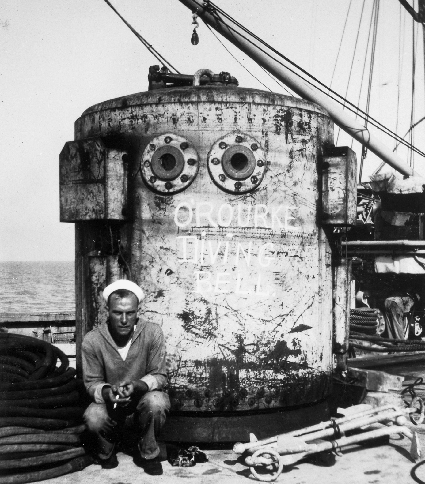 Leverkühn somewhat cozily entertained his friends with gusto of the descent to underseas depths, smoking a cigarette. The voyage was a metaphor for the modern Faustian bargain he made with the Devil, sacrificing human love for his skills of composition. For in the descent to the inhuman realm, he described having gained “glimpses afforded onto a world whose silent, alien madness was justified–and explained, so to speak–by its inherent lack of contact with our own” in the descending chamber, in three hours that “passed like a dream, thanks to the . . . glimpses into a world whose soundless, frantic foreignness was explained . . . by its [absolute and] utter lack of contact with our own:” “all around reigned perfect blackness” akin to “darkness of interstellar space.” Diving bells not only provided visits to witness sunken wrecks off Bermuda’s coast on the ocean floor, but conjured a transcendence of the human, in an unmapped region beyond the limits of the known, traveling 3600 feet below the seas surface in a two-and-a-half ton hollow ball for a half an hour, looking through quartz windows “into a blue-blackness hard to describe, . . . eternally still . . . not quite allayed by the feeling science must be allowed to press just as far forwards as the intelligence of scientists is given license to go.”