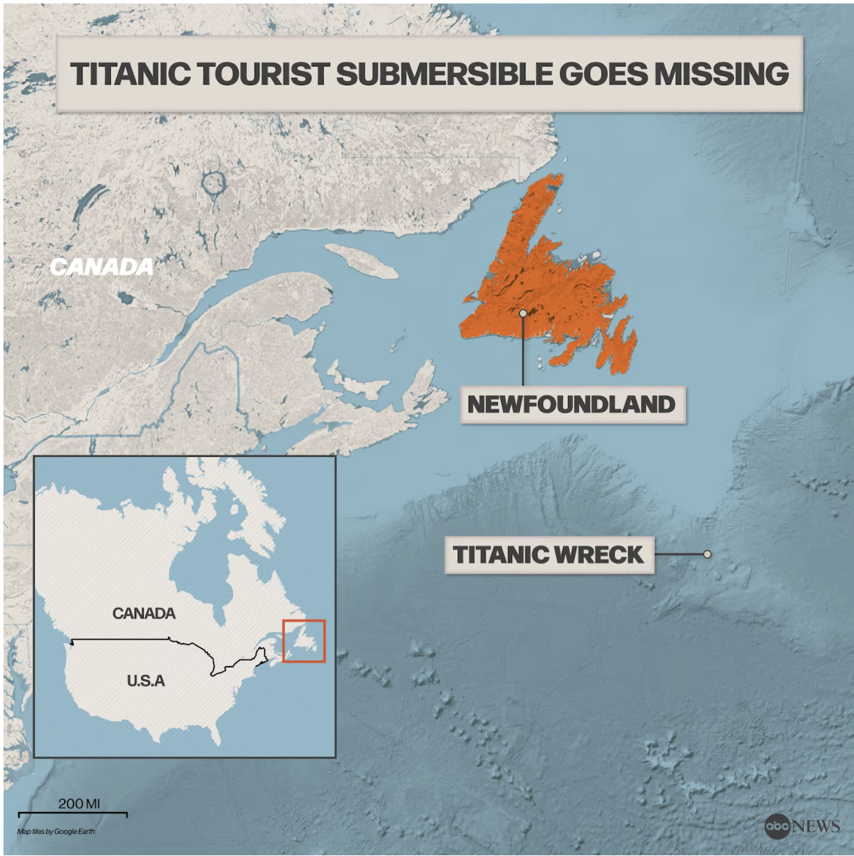 Urgent hopes to discover the five passengers tragically killed in the lost submersible off the shores of Newfoundland spread with compelling urgency across global media after the Titan Submersible lost contact with those on land. The disappearance of the crudely-designed submersible that Stockton Rush had claimed would offer a voyage to the ruins of the great tragedy of the twentieth century had exploded from the undersea pressure it endured as it descended to the wreck of the Titanic. The voyage had tempted fate as a disaster in the making. fell off of the global map, venturing deep, deep underseas. The craft’s tragic disappearance quickly dominated global media with an odd urgency of portentousness fed by the image of a renegade entrepreneur who seemed, despite his worldly wealth, to be courting disaster, in braving a new frontier of an improbably untouched wilderness. Although no bodies or skeletons remain on the Titanic’s undersea ruins, the loss of life that was itself transformed by newspapers into a traumatic site of global mourning and tragedy was eerily replicated. What Rush and his company, OceanGate, had promoted as an ability to transcend a classic icon of death, or at least carry paying observers to see at first hand, was a project he pushed even while making the deep diving sub out of experimental materials, without any third-party oversight, out of the robustt sounding materials as carbon fibre and titanium.