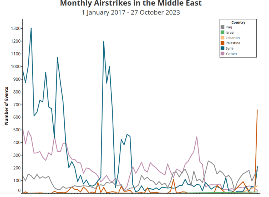 Hamas soldiers crossed the border as they incapacitated and broke through the border barrier, rather than the underground infrastructure of tunnels Israel is determined to destroy. The equating of military entrance into Gaza and its aerial bombardment with holding steadfast in “our duty to protect the citizens of Israel” against any incursion after the widely condemned invasion should make one reflect on the security that possibility in the future, and what this is indeed the beginning of–lest wall-building be seen as and accepted as a consequence of globalization, the sudden escalation of airstrikes in Palestine has shot up to an unprecedented level that have commanded global attention as they have sharply escalated to an intensity commensurable only to Syria, beyond Yemen, and like no previous bombing campaigns in the previous four years.