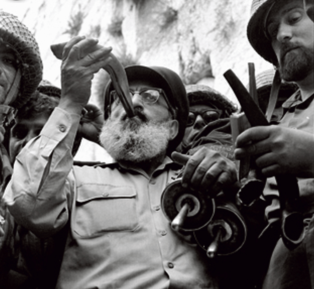 The IDF prayer conveys no sense of the deep ethical conflicts in wars far more complicated than state-on-state wars. The bombarding Palestinians in Gaza tests the notion of protecting boundaries Goren devised to preserve the newly redrawn limits of the Israeli state, imprecating “[Hashem] cause our enemies to submit before our soldiers,/and grant them salvation and crown them with victory” from Deuteronomy. If the prayers were tired to be emended in 2012, to distance soldiers from justifying killing the righteous with the wicked, lest unjustified killings occur under the name of divine justice. Yet if Rabbi Goren served in three wars as an IDF General, and initiated repeated Messianic projects to reconsecrate Temple Mount as a synagogue, seeking the temple be rebuilt after alleging he had seen the Ark of Covenant beneath Temple Moun, Goren’s hopeful marking of the historic recuperation of Jerusalem’s sacred geography after leading Israeli troops to liberate the Wall was a spectacle on television, delivering a blast from his shofar while cradling the Torah in his arms–an ecstatic moment of expanding the state–his triumphant moment is removed from the problematic role of defending the expansive settlements of Israeli enclaves that have grown in Palestinian lands.