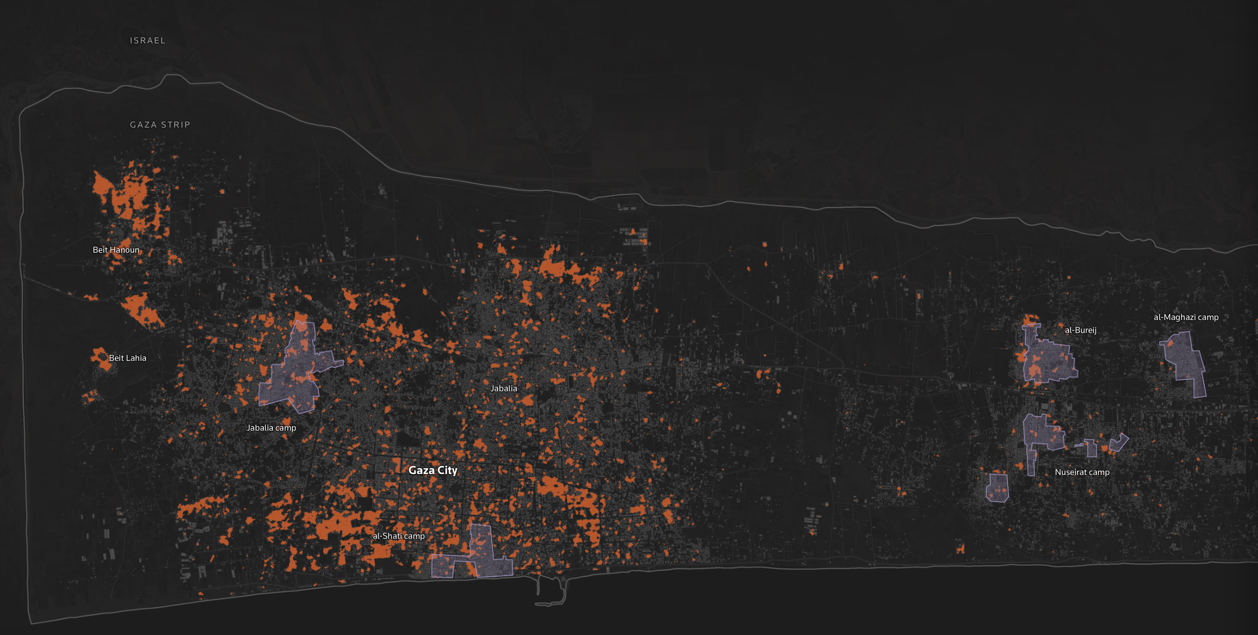 The threat that Gaza poses to the nation’s security is however different from military invasions of fifty years past. The focus on enclosing Gaza, and technologically contain the Palestinian presence from Israel as a state, has led to a logic of containment, deeply troublesome on humanitarian grounds, and seemingly without ethical grounds. Bracketing an enclave with intentions to splinter Palestinian Authority is hardly an enclave on strong legs. Yet from 2019, before the pandemic, before the Ukraine War, the blocking out of Gaza’s plight as a non-state was clear. The cascading possibilities of cross-border attacks charged to have begun from Lebanon on the IDF, as over 6,000 Israeli bombs on Gaza within a week after the October 7 attacks,–flattening large swaths of the city’s neighborhoods as wasteland, targeting neighborhoods where the deadly attacks on Israel were directed abut displacing over a million as IDF troops massed on the border with the Gaza Strip, as airplane bombing reduced many of the cities and urban infrastructure to rubble.