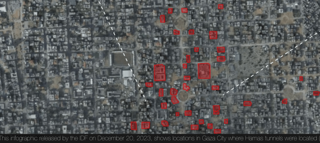 The hidden infrastructure of the tunnel network that was re-mapped in anticipation of the Israeli attack on Gaza City, as “a complex labyrinth of terrorist infrastructure” that embodied the “pure evil” of Hamas operations in ways that made it a mandatory target of destruction–an underground network where rockets, rocket launchers, and missiles “freely” moved about the cordoned enclave, where “Hamas leaders plan and orchestrate” attacks agains Israel,” in an “organized attack,” even if their scale was not known, in which the attacks on Israel were indeed mapped.
