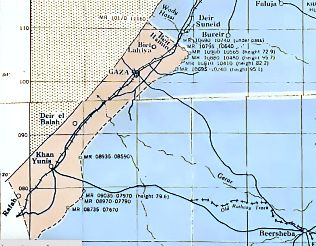 1950 Armistice Line and 1955 situation of Gaza, Mapped within Palestine Grid