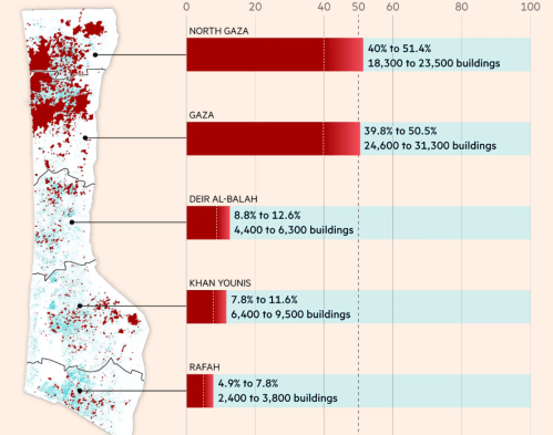 The composite damage analysis of structures in Gaza remotely sensed by Copernicus Sentinel-1 satellite on which this is based by the end of November had already suggested a damage extending form the coast to the interior of nearly 98,000 buildings–a razing of the area of North Gaza that was once one of the most densely populated areas in the world–
