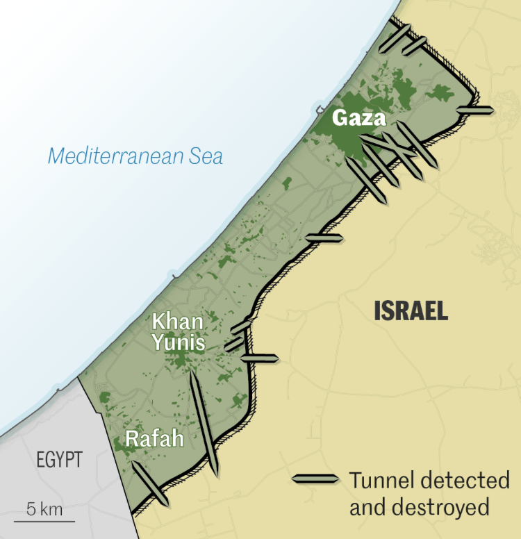 11. The sense of security and stability of securitization rocked the nation’s leadership as a huge defeat of the promise of security. Despite the destruction of twenty-three tunnels in a previous Gaza War, Operation Protective Edge in 2014, the world saw that tunnel network has been long identified as a military asset was alive, and needed to be targeted with a vengeance of Deuteronomic proportions, intent to extirpate the site for planning and storing weapons for the October 7 attack of surrounding settlements and drive Hamas from the enclave it was effectively entrenched. If the settlements surrounding the Gaza Strip were targets of Hamas–they were homes many of the Jews in the Gaza Strip had resettled–the defensive tunnel network seems ago be the grounds for continuing a long, drawn-out war different from what Israel had imagined or was prepared.