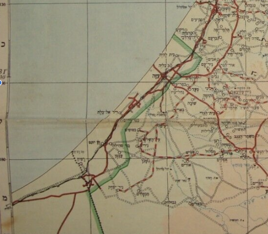 1955 Map of Gaza Region Bound by Green Line in the Palestine Grid