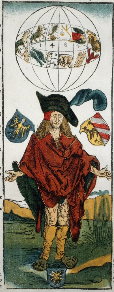 The woodcut of dog-headed exotics placed prominently on the edges of the known world circa 1493 in Buch Der Croniken und Geschichten to grab readers attention in the compendium of texts purporting to synthesize all known history, by situating many woodcuts to encourage reading its derivative text. While this motif can be seen as a classic–if not primal–dehumanizing of foreign peoples–the implicit question it raised in the early modern era was whether these dog-headed men possess souls. At a time when Europe was understood to lie on the boundary of an expansive ocean and bounded more clearly, revealed in the edges of early global map featured in the popular book–