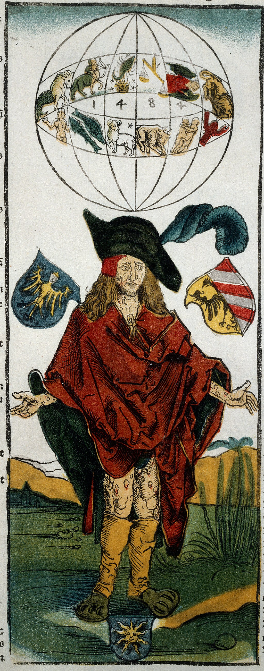 –as a facile combination of the barely credible that courted anxieties of the unknown. The telling combination of the cartographic and hysteric, announcing discovery of New Lands with evocation of monstrous races off of its margins, drawn from a repertoire of medieval mythology, by presenting the new worries of the Modern Age in circa 1493, featuring not only a range of fantastic creatures–from monopods, headless men whose mouths were situated in their chests, to creatures with a large single foot, but human-like creatures on the margins of the known with heads of dogs.