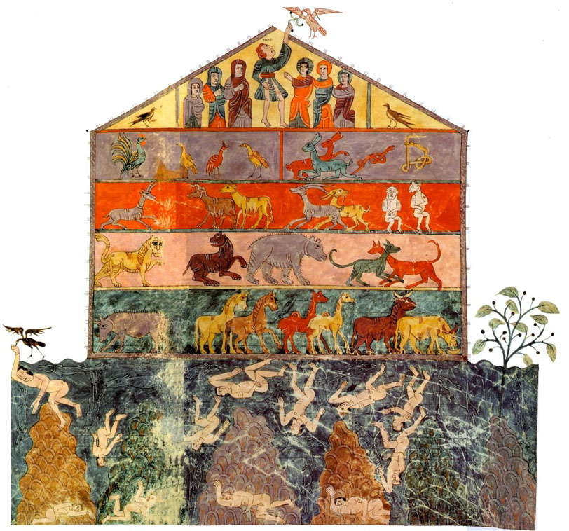 –and weren’t only wagging their tails as Noah had managed to feed them over forty days and nights. They were not only man’s best friends, but, more domesticated than the other animals boarded in Noah’s ark, and far more happy in their lot than the drowned souls one which the house-like ark had sailed the seas. It truly seems as if they are excitedly wagging their tails in the illuminated image in on the secret of the arrival of the arrival of the olive branch that heralded the recession of the waters–before any of the other non-human animals patiently waiting for their confinement of forty days and forty nights to reach an end.